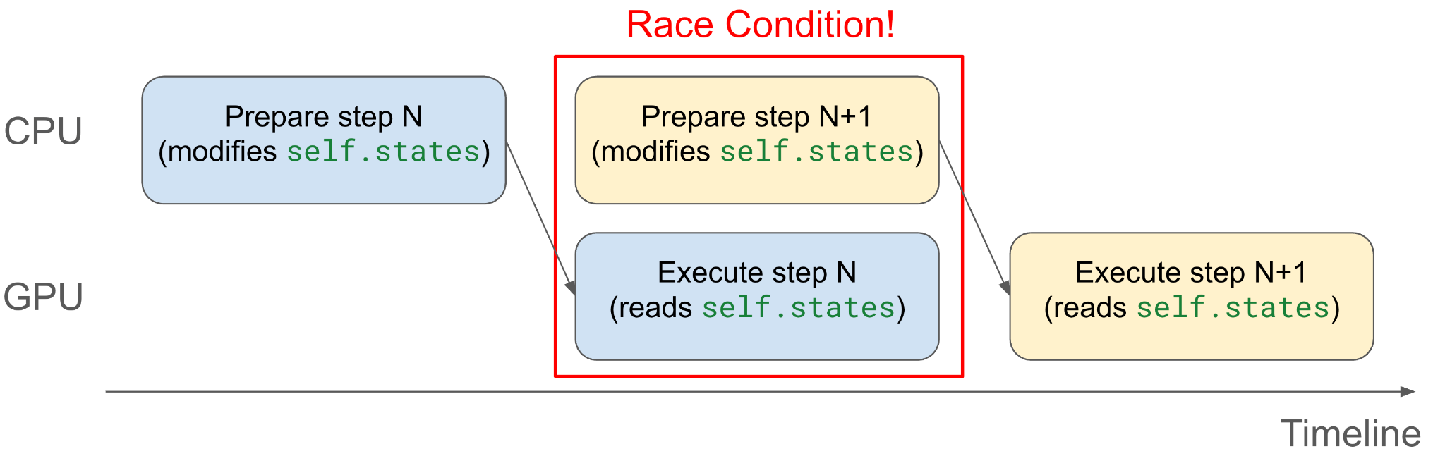 The CPU may modify self.states while GPU is still reading from it via async copy.